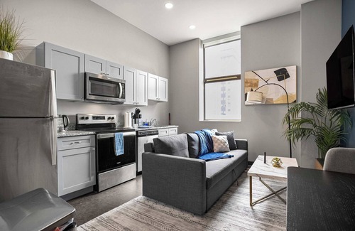 CozySuites presents a newly revitalized historic building in Downtown Pittsburgh, offering easy access to all the city's attractions. Ideal for both leisure and business travelers, this condo features seamless check-in, fast wifi, and thoughtful touches, with a tech-first approach to make you feel at home while you're away. Experience comfort and convenience, just like a local!