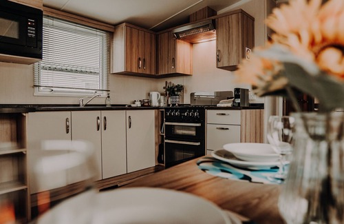 The caravan has everything you would expect from a van, kitchen fully equipped with all your need, microwave, electric stove, oven, dining table and chairs,double glazing and central heating . Our kitchen makes cooking for the family a breeze.