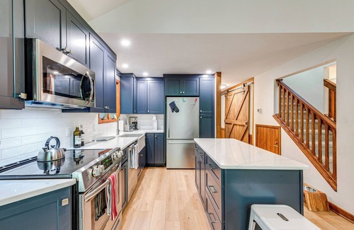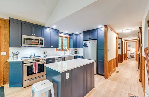 Gather loved ones and pets and retreat to this spacious vacation rental in Pocono Pines. Enjoy cookouts on the deck while the kids play on the swing set. This property also features a scenic on-site creek for fishing and swimming. Looking for more adventure? Hit the slopes at Jack Frost Ski Resort, or zip down Kalahari Indoor Water Park's waterslides! When you're ready to unwind, return to the 3-bedroom, 2-bath cottage, roast s'mores around the fire pit, or play a board game by the fireplace.