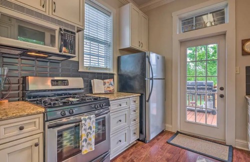 The fenced-in yard offers a private hot tub, ample space for your furry friends to roam, and a shaded patio and balcony—perfect for enjoying your morning cup of locally roasted coffee or Texas wine. There's also a propane grill for outdoor cooking.