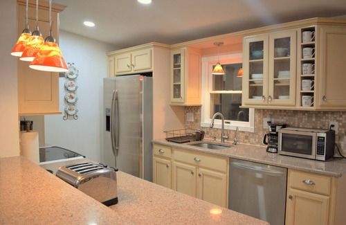 The house offers country charm with all modern amenities you’re accustomed to. With cable tv and wi-fi throughout, we’ve let no convenience go unaddressed. Enjoy meals without compromise in our fully functional kitchen, equipped with stainless-steel appliances and stocked with plates and utensils for cooking.