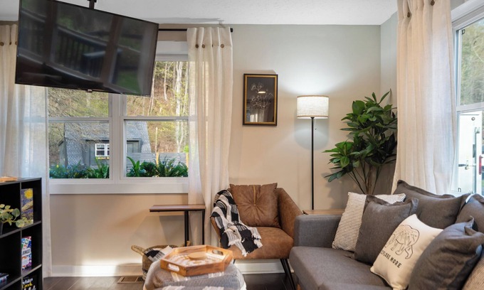 Welcome to our luxurious and modern Creekside Cabin nestled by the river and nearby the stunning Shenandoah National Park! This enchanting retreat offers the perfect blend of luxury, comfort, and natural beauty, promising a memorable vacation experience for families and their furry friends. Enjoy an outdoor movie night.