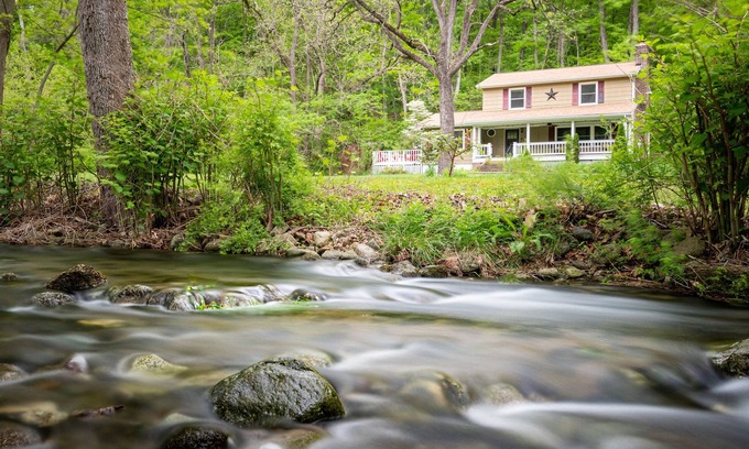 Welcome to our secluded waterfront cottage in the woods overlooking Shenandoah National Park!