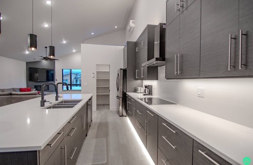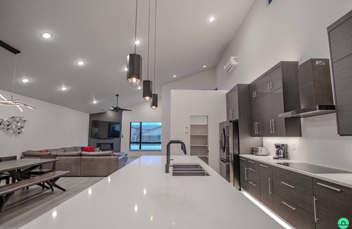 This luxurious modern home offers the perfect balance of comfort and adventure. Step outside to enjoy a private pool and hot tub, ideal for unwinding under the desert sky. A cozy fire pit creates the perfect atmosphere for stargazing, while the private patio, balcony, and outdoor dining area provide plenty of space to relax. Fire up the BBQ grill for an outdoor feast, all within the privacy of a fenced yard.