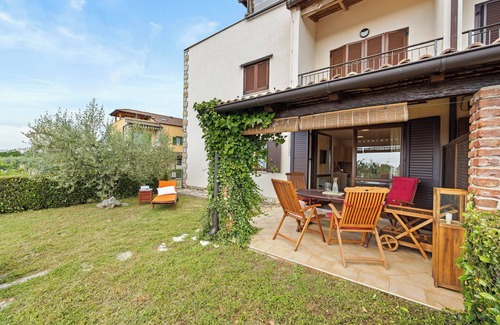 The well-kept private garden with lawn, olive tree and patio furniture invites you to relax and sunbathe. The shared pool is the ideal place to cool off on hot days and the covered terrace offers a comfortable seating area for outdoor dining. A barbecue is also at your disposal - perfect for sociable evenings in the open air.