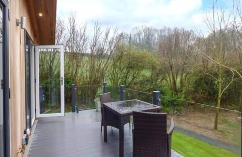 Amenities: Gas central heating with woodburner. Electric oven, gas hob, microwave, fridge/freezer, washing machine, tumble dryer, dishwasher, TV with FreeSat, DVD, WiFi. Decked patio with hot tub and furniture. Fuel, power and starter pack for stove inc. in rent. Bed linen and towels inc. in rent. Off road parking for 1 car. There is a commercial EV charger available on-site approx 50 yrds from the lodge. Note: Although all ground floor, the lodge is accessed via 5 steps and one step out from patio doors. Note: There are also steps from the decking. Note: Property unsuitable for children, including infants. Please Note: For Sunday check ins, regrettably the hot tub cannot be made ready until the Monday. Sorry, no pets and no smoking. Shop and pub 1 mile. Note: This property has a good housekeeping bond of £250.
