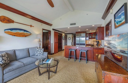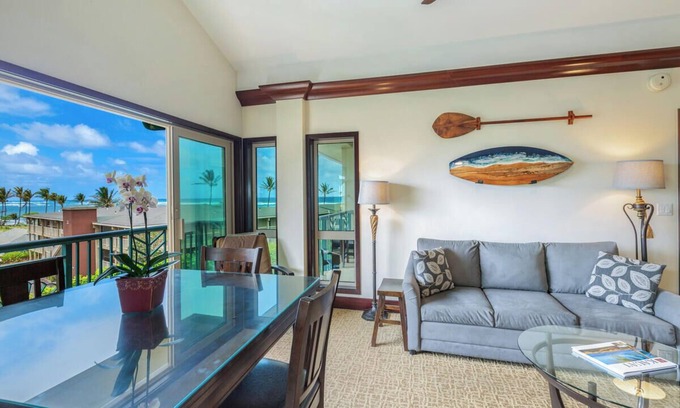 At the resort, indulge in your home away from home: unwind in one of three sand-bottom hot tubs, relax poolside with a refreshing drink, or savor Pacific-Rim cuisine at the beachfront Oasis Restaurant and Bar. A newly completed fitness center allows you to stay active with poolside views. This spacious suite is perfect for couples or families, offering unparalleled comfort for even the most discerning travelers. The resort is just steps away from the beach, where you can enjoy the beautiful ocean views and relax on the sandy shore. You can also indulge yourself at Waipouli's Spa by the Sea or work out at the Fitness Hut. Each tower at Waipouli has it's own elevator to reach the top floors.