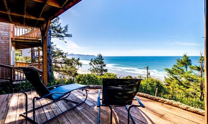 CrowsNest offers accommodations in Oceanside, a 9-minute walk from Oceanside Beach and 3.2 miles from Cape Meares Lighthouse. The vacation home has access to a restaurant. Outdoor seating is also available at the vacation home. Opening onto a balcony, the vacation home consists of 2 bedrooms. Providing a terrace with sea views, this vacation home also offers a satellite TV, a well-equipped kitchen with a dishwasher, an oven, and a microwave, as well as 2 bathrooms. There's also a seating area and a fireplace. Guests at CrowsNest will be able to enjoy activities in and around Oceanside, like cycling. Tillamook Cheese Factory is 11 miles from the accommodation. Portland International Airport is 89 miles away.
