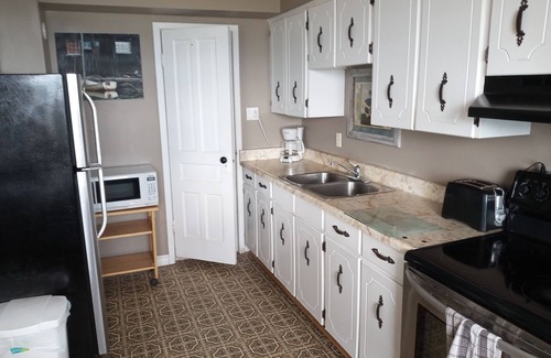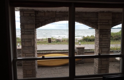 Great 2 bedroom apartment right on the beach in Crystal Beach. Spectacular views of the sand and surf from your window. Feel the lake breezes and hear the waves. Walk outside onto the beach and relax. The apartment is nicely appointed with a mixture of modern appliances, leather furniture and interesting décor. The galley kitchen is modern and functional. Vaulted ceilings in the living room lend an airy atmosphere. The bathroom has a deep clawfoot bathtub with a shower enclosure as well as laundry facilities. Suitable for mature guests looking for a relaxing and quiet getaway. If you are looking for a family vacation for yourselves and the kids, ask about our lower unit.