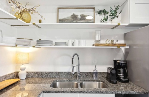 The artwork and design elements of each unit are uniquely curated for that space but share the same design theme throughout the building Stand-out features of the unit include: business high-speed Internet, ROKU smart TVs in all the bedrooms and living rooms, top-of-the-line bedding with DreamCloud Premier mattresses, fully stocked kitchens, Nespresso machines w/pods in each unit, sectional sofas (convert to queen-size beds), and on-site laundry. Whether a business venture, couples’ trip, or family vacation our space is designed for those seeking a boutique hotel-like stay with the added apartment-size comfort.