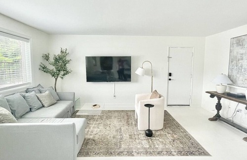 The artwork and design elements of each unit are uniquely curated for that space but share the same design theme throughout the building Stand-out features of the unit include: business high-speed Internet, ROKU smart TVs in all the bedrooms and living rooms, top-of-the-line bedding with DreamCloud Premier mattresses, fully stocked kitchens, Nespresso machines w/pods in each unit, sectional sofas (convert to queen-size beds), and on-site laundry. Whether a business venture, couples’ trip, or family vacation our space is designed for those seeking a boutique hotel-like stay with the added apartment-size comfort.