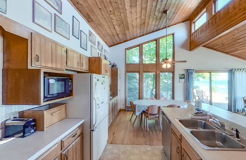 Crystal Lake retreat w/terrific lake views, private waterfront, firepit, 2 bikes | Cabin in Frankfort