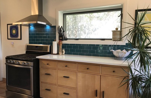 Subway style glass backsplash
