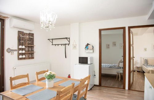 Offering a garden, Csillagvirág Apartman Gyula features accommodations in Gyula. With garden views, this accommodation provides a terrace. The apartment offers rooms with air conditioning, free private parking, and free Wifi. The units come with parquet floors and feature a fully equipped kitchen with a microwave, a dining area, a flat-screen TV with cable channels, and a private bathroom with shower and a hair dryer. A toaster, a fridge, and kitchenware are also featured, as well as a coffee machine and a kettle. At the apartment complex, the units are fitted with bed linen and towels. A selection of options including warm dishes, fresh pastries, and fruit are served for breakfast, and breakfast in the room is also available. A bicycle rental service is available at the apartment, while cycling can be enjoyed nearby. Castle of Gyula is a 19-minute walk from Csillagvirág Apartman Gyula, while Gyula Train Station is 1.2 miles away.