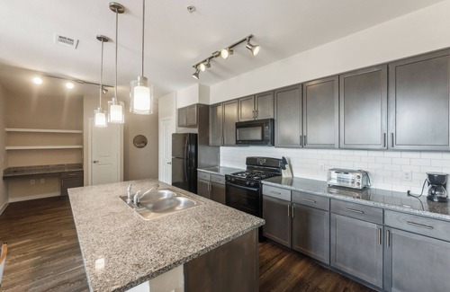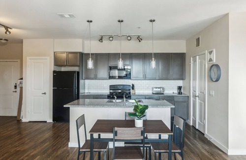 Gourmet Kitchen: Love to cook? This modern kitchen is equipped with everything you need to whip up your favorite meals. From a full-size fridge, oven, stove, microwave, and dishwasher to a coffee maker and toaster oven, you’ll feel right at home.