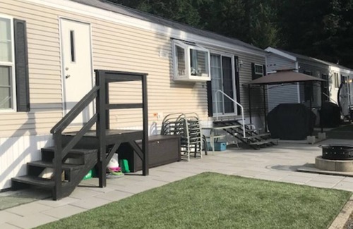 A fully equipped cozy 2 bedroom vacation home in a resort park, only 90 min from Vancouver. The park is perfect for a family/couple wanting a relaxing country escape. Comfortably sleeps 6, has outdoor kitchen (3 burner stove, prep station & BBQ), patio dining/relaxation area, fire pit (BYO wood), pool, hot tub, tennis court/basketball/games room & all water activities at the lake, 5 minutes away. The area offers hiking trails, golf, amusement park, water slides & restaurants for your enjoyment.