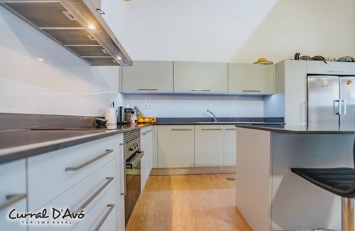 Curral D'Avó has a fully equipped kitchen, a living room with fireplace, two rooms, a reading room and a leisure room, also has a barbecue and outdoor recreation areas with swimming pool.