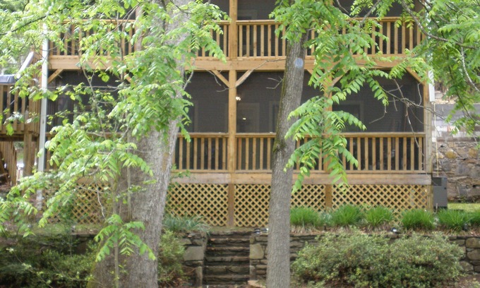 Welcome to C & G's Rocky Broad River Cabin - the longest 'family owned' rental property in Bat Cave. One step onto our back porch and you'll be "hooked"!!! Remodeled in 2010, the porch boasts over 300 sq. ft. of screened-in space which is a great extension of the living area of the cabin. Here, you can rest, relax, read, or even take a nap while listening to the river in complete "bug-free" comfort. Better yet, start your morning with breakfast on the porch; lunch and dinner work equally as well. There is seating for 6 at the table but with all this space, more can be included.