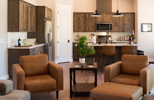 The Knotty Pine features 3 bedrooms, including an adjustable California king primary suite, a queen guest bedroom, full size bunk beds with an additional twin trundle in the 3rd bedroom and a twin-sized sleeper sofa in the den (and great kid hangout). Our home is beautifully decorated in a modern farmhouse style, keeping our guest's relaxation and comfort in mind. The Knotty Pine is fully equipped with quartz countertops, farmhouse sink, top of the line stainless steel appliances, newly carpeted bedrooms with hardwood floors running throughout the rest of the home.