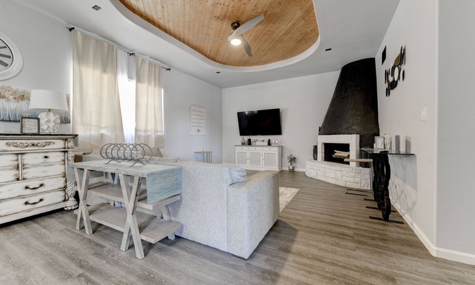 - 5 minutes away from Dana Peak park and the lake; this home has a unique circular designed kitchen and an open floor plan lay out with high ceiling heights throughout the home and an extraordinary Texas -size fireplace in this hilly, secluded and quiet community of Harker Heights. The home sits on a corner lot with perfect size backyard for your next unforgettable cook out with family & friends; the double door opens to the kitchen and your partner can prep your side dishes in the home’s huge circular designed kitchen. Then at night throw your sandals and bare your feet in your custom built Mediterranean style master bathroom. Or chill and watch scary movies in your dark media room with 3 beds plus a reclining sofa. When you go outside enjoy the sight of Bambi and friends plus you’re minutes away from the Lake and Dana Peak park. With close supervision the kids can enjoy a hike and picnic at the park. Book now and get rested in this quiet oasis of a home in the established part of Harker Heights; less than an hour away drive from Salado, Waco, Georgetown, and other suburb cities of Austin. Other homes nearby can not and will be very
