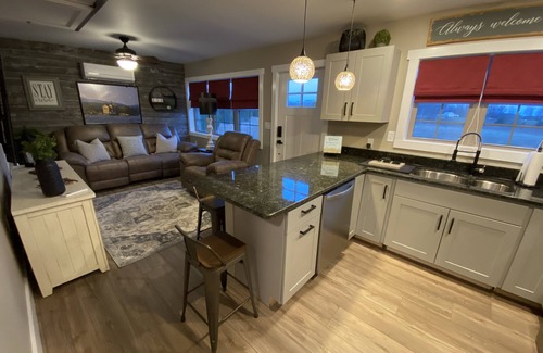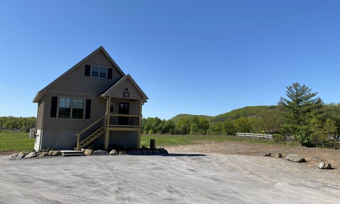 We welcome you to this newly constructed, 1 bedroom, 600 sq ft custom carriage house. Eat in kitchen contains all modern amenities, electric range, microwave, dishwasher, etc, in an open, flowing layout. Large rear deck offers mountainous views, along with barbecue grill, and high-top seating around the propane fire pit.