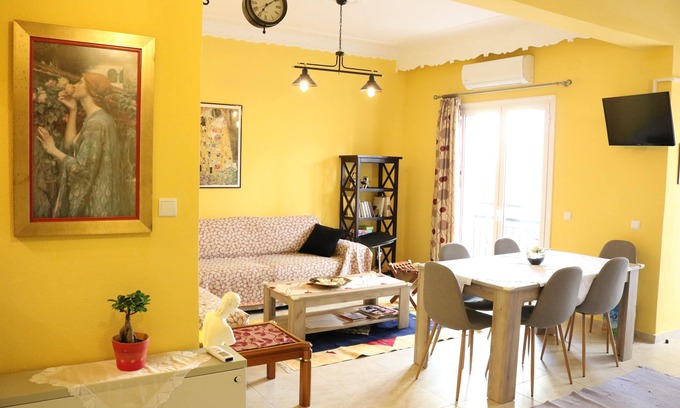 Τhis beautiful and comfortable apartment of 80 sq.m. is located very close to the city centre, but also in a quiet area, near the main (free) Parking.