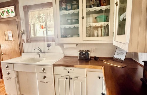 The Clover House is the perfect place to stay for your family or a group of friends. The home is equipped with pots, pans, kitchen utensils, and basic cooking spices. Provided is a convection/air fryer, electric skillet, crock pot, microwave and a vintage oven! A coffee station consists of creamer, sugar, and Sweet n Low.