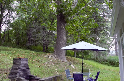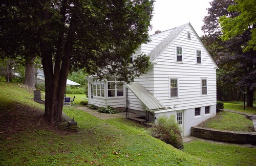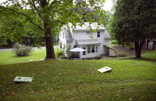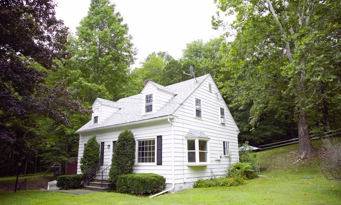Enjoy a taste of the country in this quaint Cape Cod-style house just outside the village of Delhi. Less than a 3-minute drive from restaurants and shops on Main Street and even closer to SUNY Delhi. Also nearby is the college golf course, the trailhead to the Bramley Mountain Fire Tower, fishing access on the Delaware, and other outdoor activities. Short drive to Andes, Bovina, Hobart. Fast Wi-Fi, 2 BR (queen beds), dedicated workspace, cozy living room, and a spacious and private backyard.