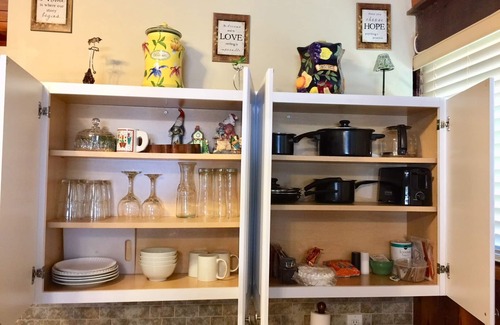 This stunning private studio cabin has a private entrance with everything you need to make your stay comfortable. You'll have control of the temperature settings all to yourself. The walls and ceiling are constructed of cedar making this studio a great relaxing get-away for a couple or just one looking to escape from it all. There is a private bathroom with shower. Fridge/freezer combo, coffee maker, toaster, microwave for your leftovers, double stove top burner, plates, glasses, utensils, towels, Wi-Fi & Direct TV. All utilities included, with wi-fi and cable.