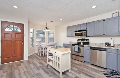 2 Bedroom 2 Bath beach getaway. This newly renovated house is centrally located in South Jacksonville beach. Walk to the beach, park and restaurants. It is 3 and half miles to Mayo clinic and 6 miles to TPC. 1 Queen bed, 1 full bed and a futon for sleeping. A huge sectional sofa in living room. A bistro table, kitchen table that turns into a game table, an island and two outside lounge areas one with a grill. Call host at 904-662-7705 with any further questions.