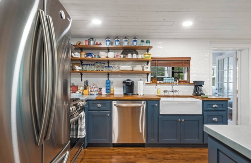 This 1931 cottage is just so cute, and is a great getaway place for a small group to enjoy the yard, or the wonderful kitchen and large TV and or just relaz! Bonus cabinette cottage in the back that allows for more guest to stay. The porch also has a twin bed for naps or a good nights rest.