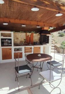 BathroomTowels, Bathtub or shower, Toilet, Shower, Toilet paper, Private bathroom, Body soap, Hairdryer, ShampooMedia & TechnologyTV, Flat-screen TVGeneralAir conditioning, Trash cans, Heating, Hardwood or parquet floors, Private entrance, Smoke AlarmKitchenDining table, Kitchenware, Oven, Stovetop, Refrigerator, Dishwasher, Kitchen, Wine glasses, Electric kettleLiving AreaDining area, Sitting areaViewGarden view, ViewOutdoorsOutdoor dining area, Outdoor furniture, Terrace, Private pool, BarbecueBedroomWardrobe or closet, LinensRoom AmenitiesSocket near the bed, Drying rack for clothingPool and SpaHeated pool, Pool cover, Pool towels, Pool with a viewFood & DrinkBottle of water |