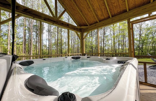 Hot tub tucked away in the woods in a screened in porch where you can enjoy the stars year round. Fully equipped cottage, perfect for a romantic getaway, bachelorette party, or family vacation.