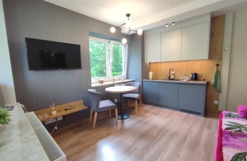 Providing a garden, Czarodziejska Góra Kozubnik Daglezja provides accommodations in Porąbka. This property offers access to a balcony and free private parking. The property offers a children's playground. Offering a terrace and mountain views, the apartment includes 1 bedroom, a living room, flat-screen TV, an equipped kitchen, and 1 bathroom with a walk-in shower. Towels and bed linen are featured in the apartment. The property has an outdoor dining area. Guests may eat at the on-site family-friendly restaurant, which is open for dinner, lunch, brunch, and cocktails. Guests at the apartment will be able to enjoy activities in and around Porąbka, like skiing, cycling, and hiking. The apartment also has outdoor fireplace and a picnic area for a day outdoors. Auschwitz is 19 miles from Czarodziejska Góra Kozubnik Daglezja, while Sports and Recreation Centre Oświęcim is 18 miles away. John Paul II International Kraków–Balice Airport is 44 miles from the property.