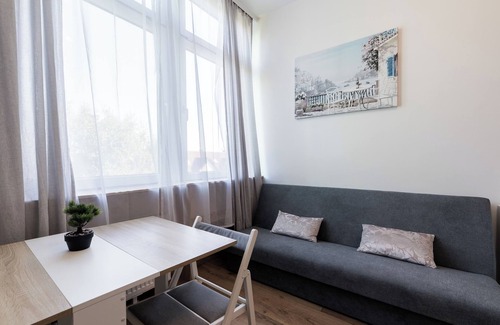 Czeremchowa Comfort Studio features a living room with a fold-out sofa, a separate sleeping area with a comfortable double bed, a kitchenette, and a bathroom. It offers a range of top-class amenities, including free WiFi, cable TV, a hairdryer, iron, washer-dryer, induction hob, fridge-freezer, dishwasher, oven, microwave, kettle, and kitchen utensils. Guests can also use public parking, though parking spaces are not guaranteed.