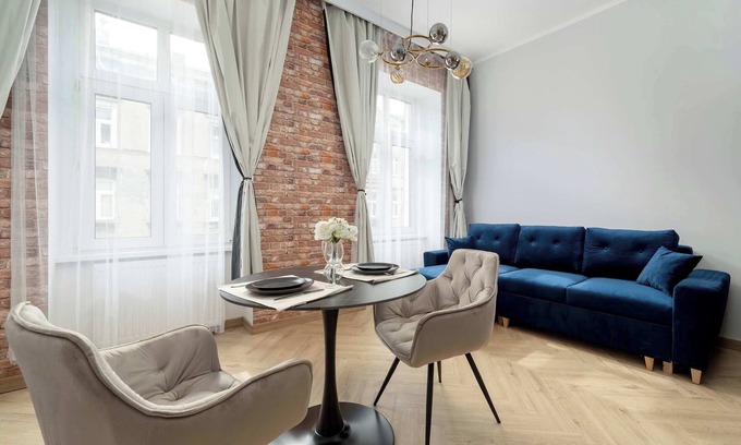 The apartment is located on Dąbrowskiego Street, in the heart of the revitalized Oławska Suburb – now one of the most desirable and stylish areas in Wrocław. Historic townhouses, cozy cafés and local shops create a unique atmosphere where history blends seamlessly with urban life. The apartment is only 0.7 km from Wrocław Główny railway station – the city's main transport hub, perfect for both tourists and business travelers. Just 0.7 km away is Park Staromiejski, ideal for a morning walk or a relaxing moment in nature. Culture lovers will appreciate the proximity of Capitol Musical Theatre (0.6 km) and Wrocław Opera House (1.3 km). The Market Square, always full of life, is just 1.2 km away – a pleasant 15-minute walk. Also worth visiting is Ostrów Tumski, the city’s oldest district full of historic charm, located 2.0 km from the apartment. Fans of modern architecture can explore Sky Tower (2.3 km), while families with children will enjoy Wrocław Zoo and Afrykarium (4.4 km) and the famous Centennial Hall (4.4 km). The location ensures excellent access to public transport – the nearest bus stop is 0.2 km away, and the tram stop is 0.3 km away. Wrocław Airport is located 12.5 km from the apartment and can be reached in around 25–30 minutes by car or public transport.