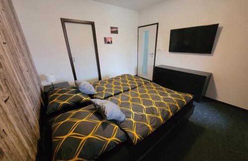 Offering a bar, Dům Pálava features accommodations in Perná. This property offers access to a terrace and free private parking. The vacation home also offers facilities for disabled guests. With free Wifi, this 3-bedroom vacation home offers a flat-screen TV, a washing machine, and a fully equipped kitchen with a dishwasher and oven. Towels and bed linen are offered in the vacation home. The property has an outdoor dining area. For guests with children, the vacation home provides both an indoor and outdoor play area. Guests can swim in the outdoor swimming pool, go cycling or hiking, relax in the garden, and use the barbecue facilities. Chateau Valtice is 13 miles from Dům Pálava, while Lednice Chateau is 14 miles from the property. Brno-Turany Airport is 27 miles away.