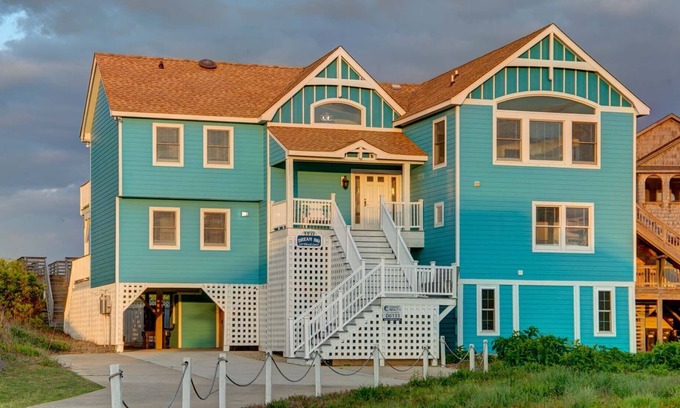 Welcome to Dream Big in this beautiful recently remodeled home just footsteps away from the beach. This spacious oceanfront home in Duck has its own heated private pool, hot tub, and elevator. New owners took over in 2022 and have poured themselves into updating this lovely home. The exterior was painted a charming blue, all bedroom furniture has been replaced, and several bathrooms have been renovated.