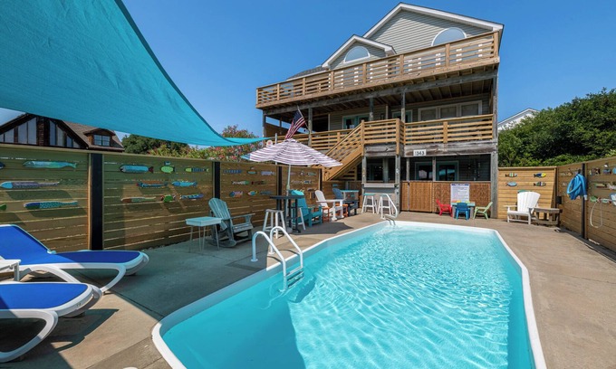 D3943 The Pup Deck Oceanside, Pool, Hot Tub, Pets OK, Beach & Sound Access! is located in Carolina Dunes. D3943 The Pup Deck Oceanside, Pool, Hot Tub, Pets OK, Beach & Sound Access! provides accommodation, featuring Air Conditioner, Pet Friendly, Private Pool, among other amenities. This House features Air Conditioner, Pet Friendly, Private Pool, to make your stay a comfortable one.