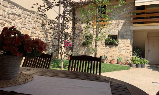 Food & DrinkChocolate/Cookies, Tea/Coffee maker, Bottle of waterBathroomPrivate bathroom, Shower, Body soap, Bathtub or shower, Toilet paper, Shampoo, Hairdryer, Bidet, Conditioner, Toilet, TowelsGeneralPrivate entrance, Tile/Marble floor, Trash cans, Lockers, Key access, Air conditioning, Heating, Carbon monoxide detector, Fire extinguisher, SoundproofKitchenStovetop, Cleaning products, Coffee machine, Kitchen, Kitchenette, Microwave, Refrigerator, Washing machine, High chair, Dining table, Wine glasses, KitchenwareLiving AreaSitting area, Sofa, Desk, Dining areaOutdoorsPatioBedroomLinens, Wardrobe or closet, Childrens' cribsViewGarden view, Inner courtyard viewAccessibilityEntire unit located on ground floorBuilding CharacteristicsDetachedRoom AmenitiesHypoallergenic pillow, Socket near the bed, Sofa bed, Non-feather pillow, Drying rack for clothing, Clothes rackEntertainment & Family ServicesBooks, DVDs or music for childrenLayoutWindowPhysical distancingSingle-room AC for guest accommodationCleanliness & disinfectionHand sanitizer |