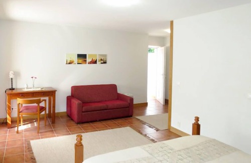 "Da Boa Fonte", 7-room house 240 m2 on 2 levels. Bright, tasteful and wooden furniture furnishings: 1 room with 1 french bed and shower/WC. 1 large room with 1 french bed (160 cm, length 200 cm), bath/WC. 1 room with 2 beds (90 cm, length 190 cm), shower/WC. Upper floor: living/dining room with satellite TV, hi-fi system and DVD. Exit to the terrace. Office with Scandinavian wood stove. 1 large room with 1 sofabed (100 cm, length 175 cm), 1 french bed (140 cm, length 190 cm). 1 room with 1 french bed (140 cm, length 190 cm). Kitchen (oven, dishwasher, 1 ceramic glass hob hotplate, 4 gas rings, toaster, microwave, freezer, electric coffee machine) with dining table. Bath/WC. Oil heating. Heating not available in all rooms. Wooden floors. Large terrace 50 m2. Terrace furniture, deck chairs (6), box-room. Panoramic view of the countryside. Facilities: washing machine, iron, children's high chair, baby cot. Internet (WiFi, free). Please note: non-smokers only. Smoke alarm, fire extinguisher. When there are less than the maximum number of guests staying at the property, not all of the bedrooms will be available for use. 208/08