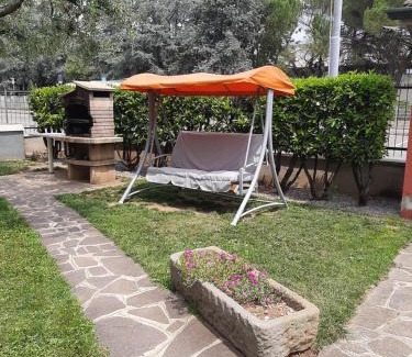 Food & DrinkBottle of water, Chocolate/Cookies, Tea/Coffee makerBathroomShower, Towels, Hairdryer, Private bathroom, Bathtub or shower, Shampoo, Body soap, Free toiletries, Toilet paper, ToiletMedia & TechnologyTV, Flat-screen TVOutdoorsTerrace, BalconyKitchenCoffee machine, Kitchen, Electric kettle, Oven, Stovetop, Refrigerator, Dining table, KitchenwareLiving AreaDining area, Sitting area, SofaGeneralSoundproof, Private entrance, Trash cans, Heating, Key access, Fan, Tile/Marble floorBedroomChildrens' cribs, Linens, Wardrobe or closetViewGarden viewAccessibilityEntire unit located on ground floor, Emergency cord in bathroomRoom AmenitiesClothes rack, Drying rack for clothing, Socket near the bed, Non-feather pillow |