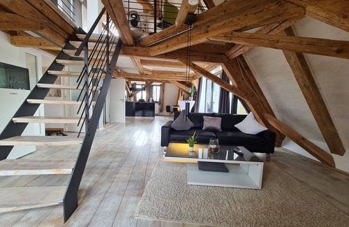 "Dachwerk" - Reichenau Island modern vacation apartment on 2 floors is located in Reichenau. "Dachwerk" - Reichenau Island modern vacation apartment on 2 floors provides accommodation, featuring Child Friendly, Internet, Kitchen, among other amenities. This Apartment features Child Friendly, Internet, Kitchen, to make your stay a comfortable one.