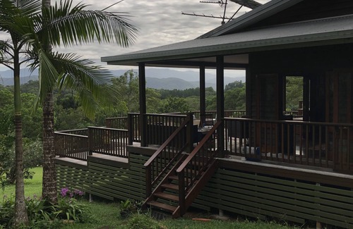 Daintree Valley Cottage is a one bedroom cottage, with plunge pool offering outstanding views of 3 mountain ranges, and 12 layers of the Daintree Valley. Sit back on the sweeping decks of the cottage or lounge in the comforts of the pool and enjoy incredible views of the Daintree valley and the most ancient rainforest in the world. The cottage is set on five acres of land giving the ultimate privacy and tranquility, although offering a majestic scene to your front view. Being self sufficient and one with the eco system to our area, the cottage runs solely on solar panels and water tanks, however electric power in the house offers full electricity with lights and fans along with the availability of running a bath spa tub for your relaxation and enjoyment. The cottage would suit a couple looking for a romantic and secluded getaway, a writer looking for that special place to create, birdwatchers, or anyone with the need to sit back and enjoy the beauty of nature surrounding you.