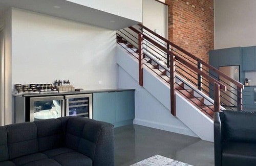 Once inside, the large living space and kitchen greets you, and the hand-crafted redgum staircase and pendant will catch your eye.