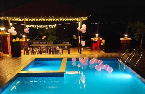 Our villa located at between panchgani and Mahabaleshwar dam view from property free packing available at place, cctv coverd from all sides 4 bedroom with attached Bathroom, gallery, 2 living room, dining area, Garden, pool, Valley View from top of mountain.