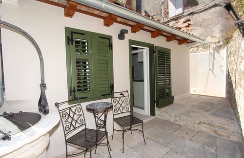 DANALU Two-Bedroom Apartment is a 3star Apartment. It is located in the strict city center of Rovinj - pedestrian area. The nearest beach is located in 5 minutes walking distance. Interior size is 60 m2 and terrace is 20 m2. It is located on floor: 1.The accommodation has three air conditioners. One air conditioner is located in the living room and the other two air conditioners are located in the bedrooms. Bed linen and bath towels are provided by the accommodation itself.