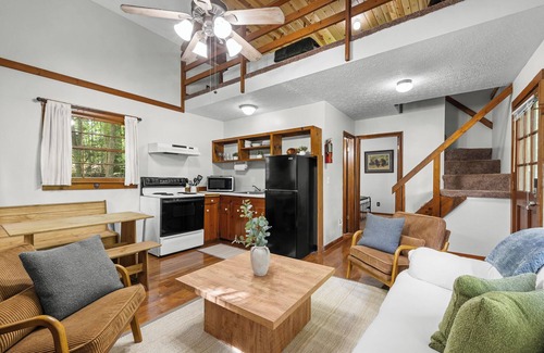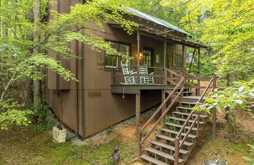 Step into a rustic retreat at The Dancing Bear cabin, nestled in the tranquil Trackrock section of Blairsville. This cozy cabin boasts a private downstairs bedroom with a plush queen-sized bed, along with an upstairs loft that features two additional queen beds. Guests can relax and unwind by the wood-burning fireplace or the outdoor firepit, and the front porch is perfect for sipping your morning coffee or enjoying an evening cocktail while taking in the serene surroundings. All bed linens and towels are provided for your convenience.