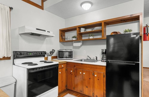 The fully equipped kitchen provides everything you need to whip up a delicious meal, while the quiet heating and cooling system ensures a comfortable stay year-round. Guests are welcome to explore the beautifully landscaped grounds of Misty Mountain.