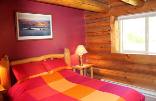 Enjoy our two bedroom log townhome for your visit. The living room has a beautuful log beam cathedral ceiling and the cabin has afully equipped kitchen with a dish washer, refrigerator, toaster, stove, microwave, and coffee maker. A futon sofa in the living room folds into a queen size bed. The downstairs bedroom has a queen bed and a twin bed. The downstairs bathroom has a tub shower. And the upstairs bedroom has a queen bed and a twin bed. And the upstairs bathroom has a shower. This townhouse is supplied with all the linens and towels. Enjoy your stay!